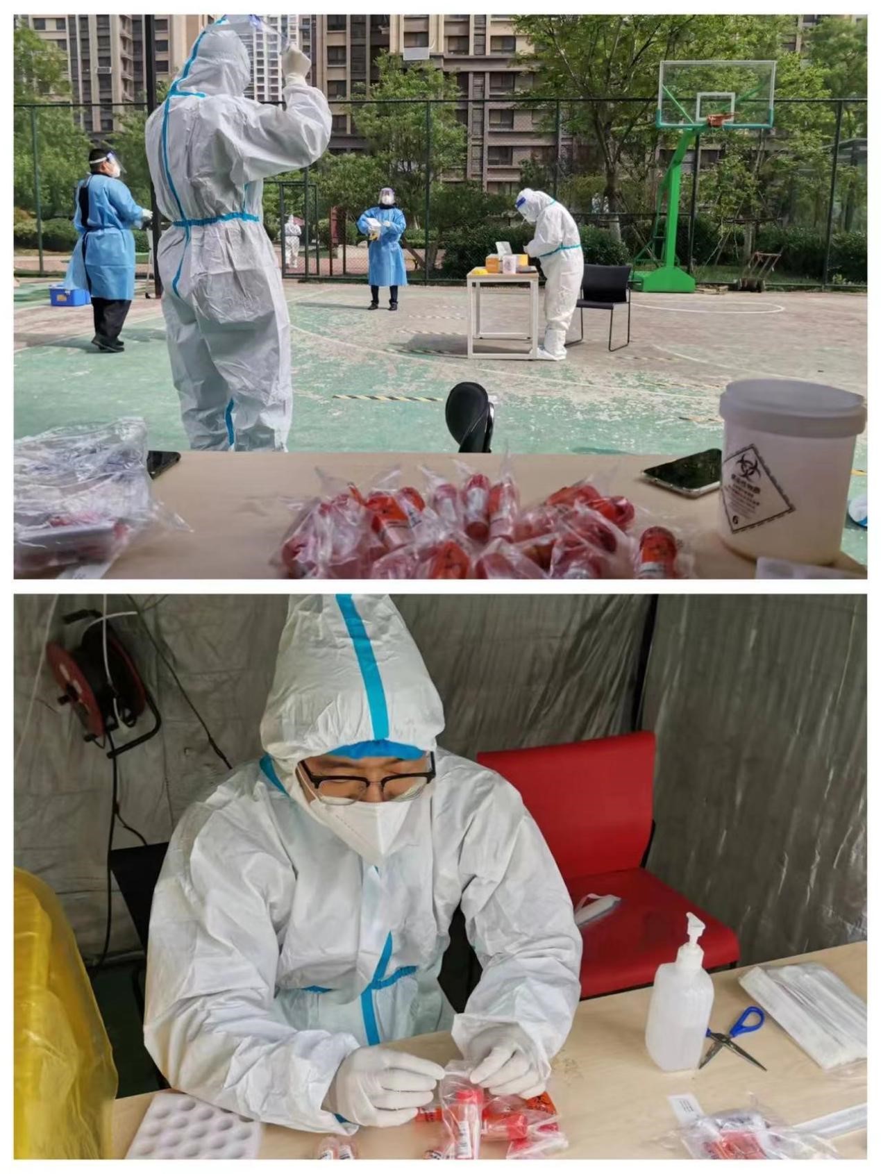 社区疫情防控情况复杂,工作量巨大,但沈俊峰始终保有退伍军人的正直秉性,带领两位年轻人冲锋在前。到岗第二天,三名下沉社区人员就立即投入工作状态,协助社区严格落实每一个居民应检尽检,从早上7点到晚上11点,连续工作十多个小时,完成近3000人的核酸检测工作。