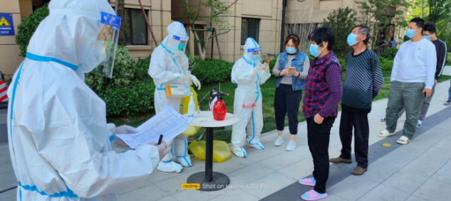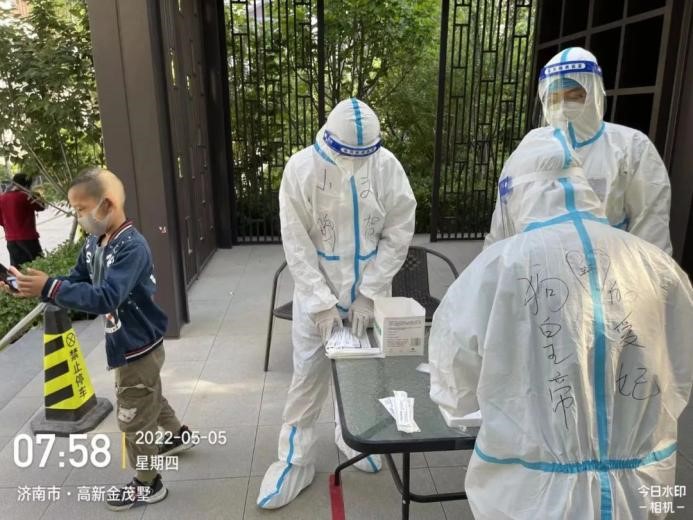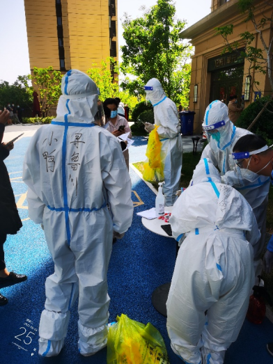 由于一直在高温下“全副武装”,志愿者的防护服早已被汗水浸湿,手掌被泡得发白,脸上也被口罩勒出了痕迹,更有志愿者出现了头晕、流鼻血等中暑症状。尽管如此,他们也是稍加休整,便再次冲锋向前。休息时间,志愿者们席地而坐,匆匆吃完奔赴岗位,因忙碌而错过饭点更是常事,然而他们却从未有过怨言;腰肌劳损、椎间盘不好的团队干部即使腰疼的直不起来,也依旧抵挡不住他助力抗疫的热情与行动。……小鸭志愿者寻鲁川在协助核酸检测时,有一个小男孩很不配合,由于当天的核酸检测并没有贴纸,男孩妈妈便偷偷准备了小贴画,拜托寻鲁川给小朋友贴上。寻鲁川很感动,并且乐意帮忙,寻鲁川说:“他两只大眼睛直勾勾的盯着贴纸看,特别萌,心都被萌化了,真是开心了一整天,所有的疲惫都一扫而空。” …… 在抗“疫”前线,小鸭人和社区居民们互相理解,互相配合,如此令人感动又暖心的事迹不胜枚举。
