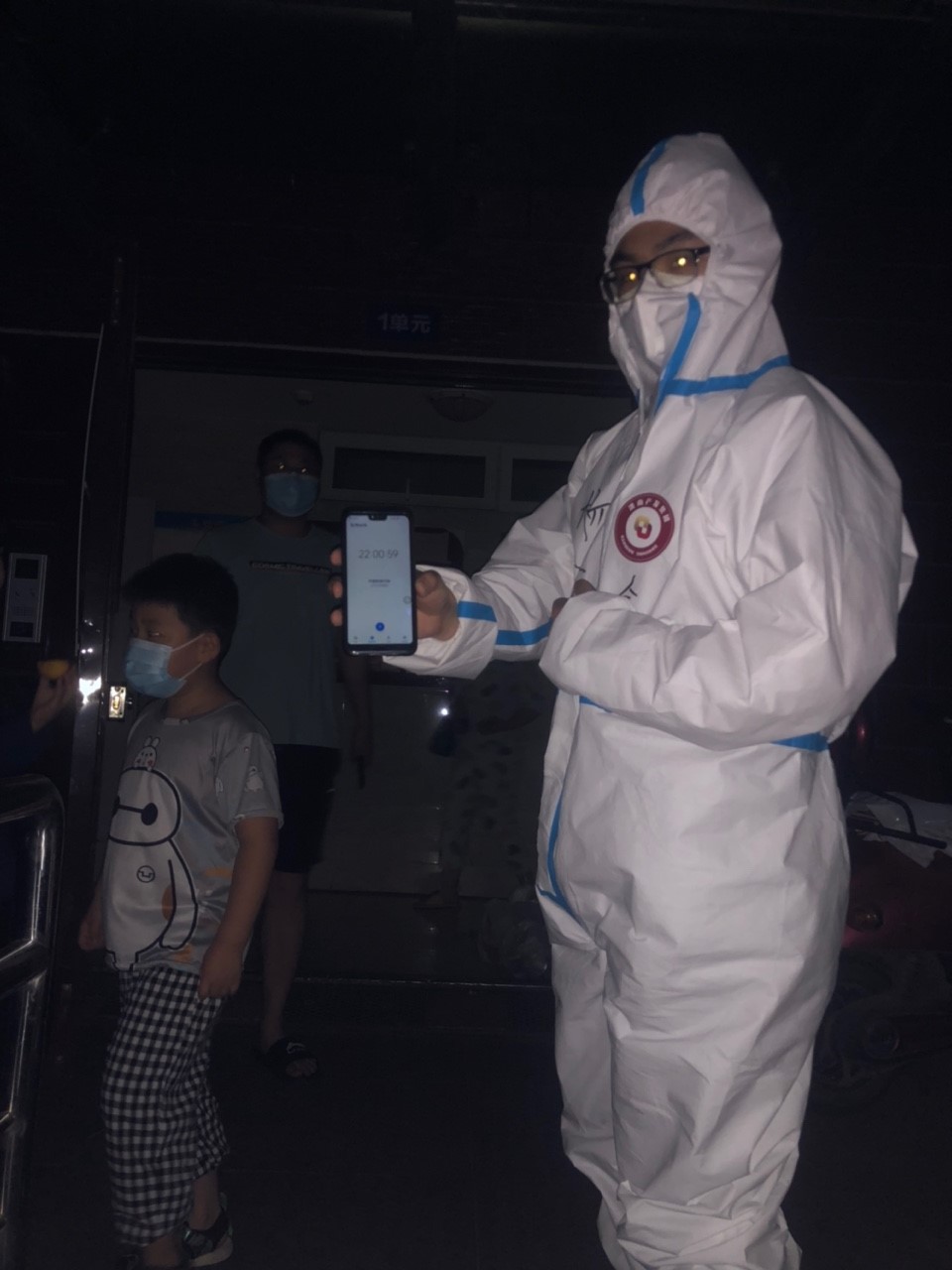 在疫情防控最吃紧、最关键的时刻,山东金钟科技集团坚决贯彻落实济南市委、市政府关于组织企事业单位人员参与社区疫情防控的紧急通知要求,积极响应bevictor伟德集团选派人员下沉参与基层社区防疫的号召,共选派出翟思成、刘贵武、冯鹏飞、闫春贞、郭正亮、杨世兴、赵士民、杜瑞帅、李登哲、侯志强、刘欣、张现录等12名精兵强将到基层社区参与疫情防控工作。“金钟大白”兵分三路,第一时间到达天桥区滨河雅居社区,槐荫区锦绣城社区和锦绣睿园社区,协助社区进行核酸检测引导、封控楼值守、人员信息登记等各项工作,他们每天早出晚归,无论是雨中还是晴日,清晨还是深夜,他们穿着厚重的隔离衣,竭尽所能、坚守岗位,听从指挥、勇于担当,为社区筑起了一道坚不可摧的疫情防线。