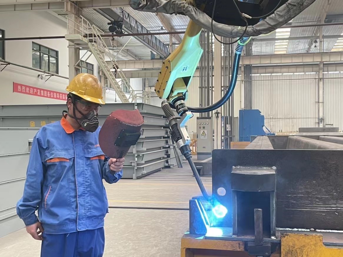 金钟研发部门为提升汽车衡秤台的承重强度,新设计了U型梁结构,经过试制和不断推广,订单逐步增加,汽车衡班的工作压力也不断加大,而汽车衡的称台焊接成为了制约工作效率的瓶颈。为了能够按时保质完成生产任务,党支部组织成立“党员编程突击队”,由党员张庆力任队长,突击队成员发挥模范带头作用,发扬匠心精神,成功解决了“汽车衡自动化焊接编程”和自动焊机在平台底部寻位不准难题,最大限度地提高焊接机器人的效率。